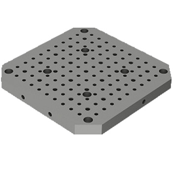 • Subplate is permanently aligned to machine axes and becomes an accurate reference for machine setups. Accuracy of grid eliminates the need for incicating or probing.
